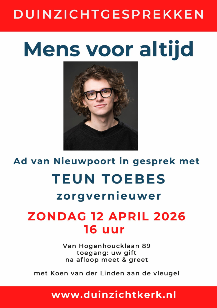 ![]() De Duinzichtkerk is een open huis van inspiratie en ontmoeting in Den Haag voor wie maar wil. Al meer dan negentig jaar komen hier mensen samen om wekelijks nieuwe inspiratie op te doen voor hun leven, hun werk en voor de wereld dichtbij en ver weg. Bron van inspiratie is het aloude Bijbelverhaal. In een wereld die gedomineerd wordt door de waan van de dag, heersende opinies en vooroordelen wordt wekelijks in dit verhaal een bevrijdende en hoopvolle tegenstem gehoord. In het verbinden van deze stem met de vragen van vandaag vinden op allerlei verschillende manieren velen elkaar in de Duinzichtkerk. Hartelijk welkom! |