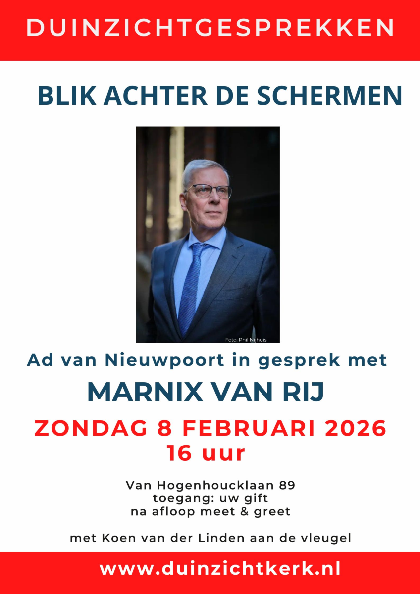 Zondag 8 februari, 16.00 uur Duinzichtgesprek met Marnix van Rij