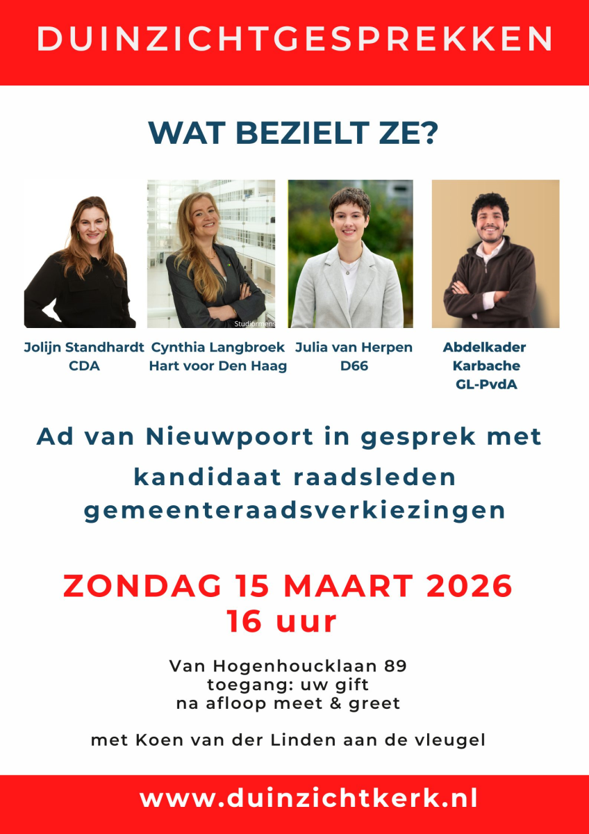 Zondag 15 maart, 16.00 uur Duinzichtgesprek Gemeenteraadsverkiezingen
