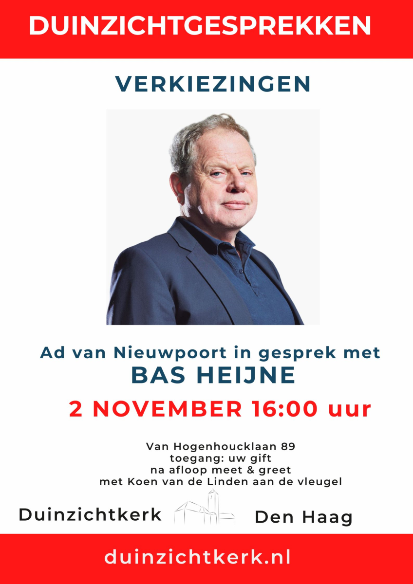 ![]() Kijk hier het gesprek terug Duinzichtgesprekken. Ad van Nieuwpoort in gesprek met Michiel Vos. |
